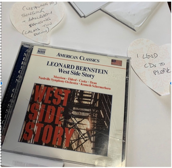 The purpose of co-design workshop 1 was to understand people’s experiences, abilities, skills and/or expertise as well as their interests of using them in the present, of learning something new, or to engage in meaningful social and creative activities. To start the discussion, we asked people to bring one or two objects along that represented (1) an activity they liked doing and (2) a skill important to them. About half of participants had brought objects to talk about, leading to a vivid discussion about their interests and skills, including sport, music, literature as well as craft skills, such as cake making or carpentry (Figure 1, Figure 2, Figure 3 and Figure 4). Interests and skills were widely varied and included some predictable as well as some less common results: