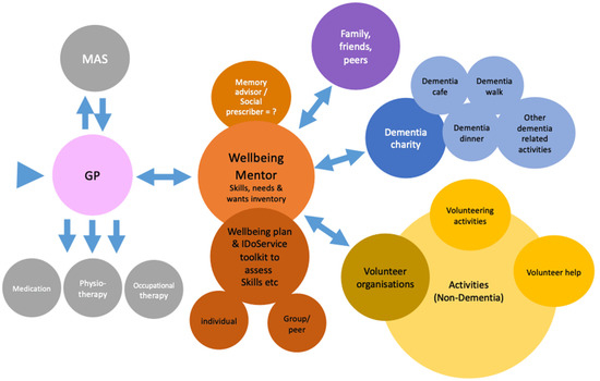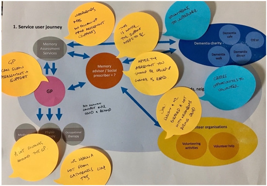 In the workshops, the discussion about situating the service revolved around the gap between MAS and access to social activities and how it might build on and complement existing dementia care and wellbeing plans. This led to discussion about the current and potential role of GPs, social prescribers and dementia advisors in informing people about activities and linking them with suitable services as part of the IDoService. Participants also considered what exactly the service could provide to cater for the diverse interests and needs of people through linking with volunteer organisation programmes and the opportunities and challenges involved. One of the participants summed the discussion up with regard to the development of the service concept: