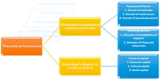 - Tolera, Habtamu, Tegegne Gebre-Egziabher, and Helmut Kloos. 2020. Using Andersen’s Behavioral Model of Health Care Utilization in a Decentralized Program to Examine the Use of Antenatal Care in Rural Western Ethiopia. Edited by Kannan Navaneetham. PLoS ONE 15: e0228282. [Google Scholar] [CrossRef]