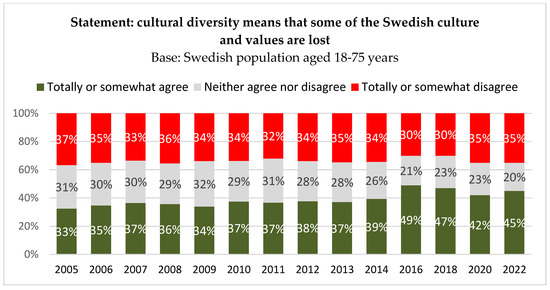 Cultural diversity leads to the loss of Swedish culture and values 2005–2022.