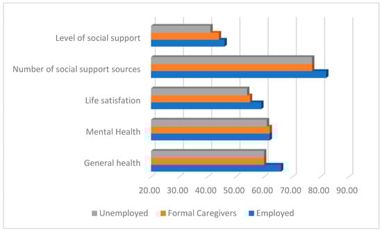 Although the review study by Brown and Clark (2017) showed that work–family balance is significantly more difficult for parents who have a child with a disability than for parents of children without disabilities, some authors point to the positive effects of employment and fulfilling professional duties on the well-being and health of working parents of children with disabilities, as work satisfies their needs for achievement and sociability, makes them feel valuable, and gives them a break from the problems of daily life (Di Giulio et al. 2014; Morris 2014; Ombla et al. 2023). In addition, employment contributes to a better financial situation for the family, which is an undeniable advantage given the higher costs of such parenting. Therefore, we hypothesised that employed parents would have higher levels of life satisfaction, physical health, and mental health compared to unemployed parents and formal caregiving parents. We also hypothesised that they would have greater social support enabling and supporting their work role, which is consistent with research by Scott (2018) who emphasised the need for social support from society and employers in enabling and facilitating the work role of mothers of children with disabilities.