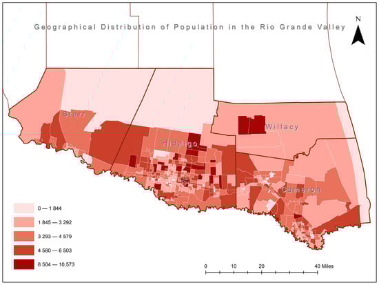 The focus area of this study is the Rio Grande Valley, which encompasses four counties: Cameron, Hidalgo, Starr, and Willacy. These counties are located along the border with Mexico in the southernmost region of Texas (Figure 1). Additionally, Cameron County is situated adjacent to the Gulf of Mexico. The combined population of these counties totals 1.37 million, with specific population breakdowns as follows: Cameron (425,208), Hidalgo (888,367), Starr (65,728), and Willacy (20,143). Among these individuals, 978,261 (70%) are aged 18 or older; the corresponding figures for each county are as follows: Cameron (303,599), Hidalgo (614,750), Starr (44,564), and Willacy (15,349).