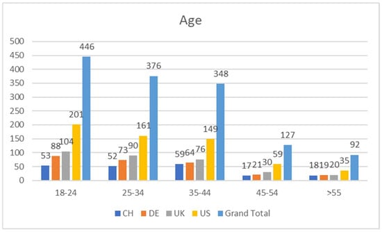 A total of 625 responses from the US, 321 from the UK, 265 from Germany, and 199 from Switzerland were recorded for the questionnaire circulated in business schools from these countries. Of the total of 1410 responses received, 21 responses were incomplete and hence were discarded, leaving a total of 1389 responses in total as a sample size. In this research, a hybrid sampling approach was employed, blending elements of both convenience and volunteer sampling as well as a stratified random sampling technique within a very specific demographic: students and faculty members from business schools. This choice was guided by the assumption that individuals within this demographic, by virtue of their educational background and professional orientation, are likely to have at least rudimentary, if not advanced, interactions with AI technologies. Given that these individuals are often the vanguard of technological adoption within organisations, we deemed their perspectives to be particularly enlightening for the study.