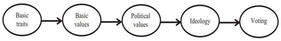 Figure 1 illustrates the strain of theory that views political values as mediators in relation to basic psychological traits and values to ideological orientation and, ultimately, voting (; ; ). Following this paradigm, the present study attempts to derive a relevant set of political values for the Bulgarian context that could provide a useful conceptual and methodological starting point for larger-scale research on political values and ideological heterodoxy, utilizing representative population samples for Bulgaria and other CEE states.