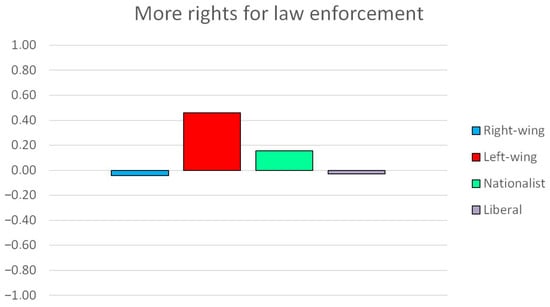 Left-wing party members stand out among all respondents in their willingness to trade Civil Rights for order and Security, as well as in their strong support for enhanced powers for law enforcement to combat crime (Figure 5 and Figure 6). Thus, in Bulgaria, leftists are more inclined to opt for Security when faced with the proverbial “Security vs. freedom” dilemma, while right-wing and liberal respondents are much less willing to trade Civil Rights for Security.