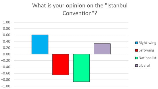 Unlike the abortion issue, the question of the ratification of the 2011 Council of Europe Convention on Preventing and Combating Violence Against Women and Domestic Violence (better known in Bulgaria as the “Istanbul Convention”) has generated an intense public debate in Bulgarian society (). Nationalist and leftist respondents fear that the document is a “double-bottomed suitcase” which, under the guise of protecting women from domestic violence, would impose the so-called “gender ideology,” aiming to “legalize the third sex” and introduce “gender education” in schools, paving the way for the legalization of homosexual marriages in Bulgaria in the future. Opponents of the Convention consider it an extremely dangerous precedent that will not only deal a heavy blow against “traditional Bulgarian family and Orthodox values” but will also “corrupt our children” by introducing such ideology as mandatory in schools. All these concerns are widely shared by the representatives of the nationalist and left-wing parties, who express strong negative opinions on the document (Figure 11). As a middle-aged leftist put it, “…Nothing is more dangerous than gender ideology—it violates the natural order and the family”. According to nationalists and socialists, Bulgaria should follow the example of countries like Russia, which “…hold on to their Orthodox values” and should resolutely refuse to ratify it. A female left-wing activist in her fifties contends that the heated debate the Convention generated in the country is proof that “…the nation’s immune system is working”. Thus, the Convention played the role of a catalyst for intense conservative mobilization, serving as a sort of litmus test for an individual’s liberal or conservative ideological orientation in the social sphere and a dividing line in the emerging opposition between the two ideologies in Bulgarian society.