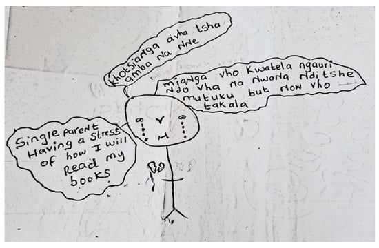 The data reveal that participants experienced stress at home because of the pressure of managing schoolwork and caring for their babies. One participant drew a picture of herself crying because her parents were angry at her, which resulted in the silent treatment from her father for being a young parent. Participants also indicated that even their parents were affected by the stigma of pregnancy. Bianca explained her drawing (Figure 2):