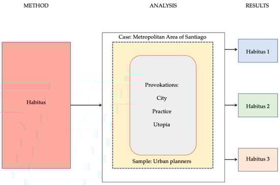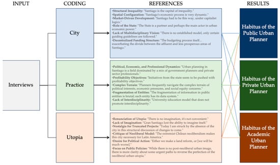Hence, the relevance of this article is justified, analysing under the habitus methodological framework the 27 semi-structured interviews conducted between January 2015 and August 2016 with various Chilean urban planners. This study explores their dispositions towards three fields related to their disciplinary tasks: a general view of Santiago de Chile, the practice of urbanism in such a city, and reflections on the role of utopia in urban thinking. These themes were triggers to identify specific views and predispositions towards these topics, seeking to identify and differentiate the habitus of these actors in the urbanism playing field. From these interviews, a coding and matrix organisation of results is carried out, analysed with the thematic analysis technique. The research behind this article is triggered by the following research questions: (1) How do the habitus of public, private, and academic urban planners in Chile manifest, and what are their defining characteristics in the context of neoliberal urbanism? (2) In what ways do these habitus influence the urban planning practices and decision-making processes, and how are they, in turn, shaped by the neoliberal urban context?