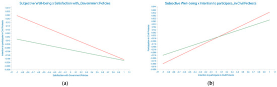This approach allows for a deeper understanding of how citizens’ levels of satisfaction and well-being can impact, intensify, or mitigate their willingness to participate in civil protests, particularly when they are dissatisfied with government policies. By analyzing subjective well-being as a moderating variable, we are assigning it a new role and reshaping its relationship with political participation in a way that could have significant implications for understanding political behaviors and protest dynamics in restrictive settings.