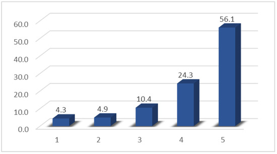 Figure 1). More people rated it 4 and 5 than those who gave it the minimum score of 1 and 2. Men were more likely to agree, 48%, compared to 38% of women.