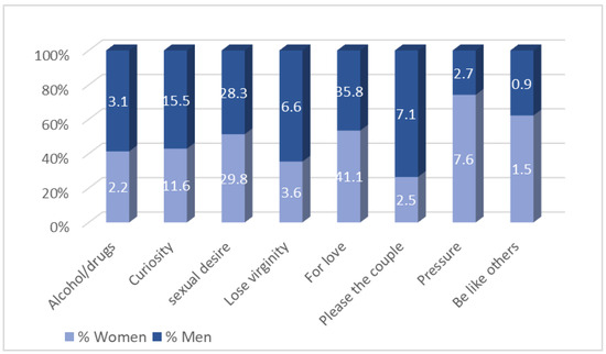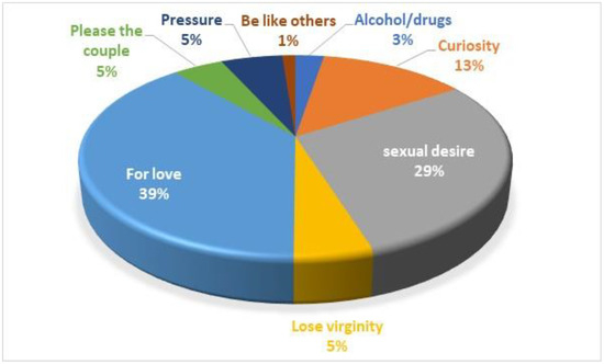 However, even when the weights of other variables are lower, there are differences to be considered in a gender analysis such as the one proposed here. Thus, the issue of pressure to have sex is a reason reported to a greater extent by girls, while the importance of losing one’s virginity or pleasing one’s partner is a reason reported to a greater extent by boys (