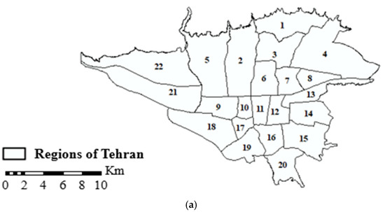 (a) Map of regions of Tehran city, 2006. (b) Map of census tracts in Tehran city, 2006.