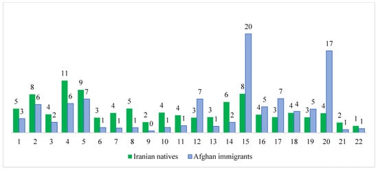 The spatial distribution of Afghan immigrants within the city is heterogeneous. Afghans choose specific areas to reside in, resulting in notable segregation from the native population. Figure 2 shows that around 37% of Afghan immigrants reside in Districts 15 and 20. Following closely behind, Districts 17, 12, and 5 also have significant Afghan populations. In contrast, the majority of Iranians reside in Districts 4, 5, 2, and 15 of the city.