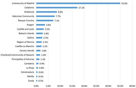 Distribution by Autonomous Community of foreign Social Security affiliates in the Special System for Domestic Employees, January 2023. Source: Prepared by the authors based on data from the Affiliation of Workers to the Social Security System (Ministry of Inclusion, Social Security and Migration).