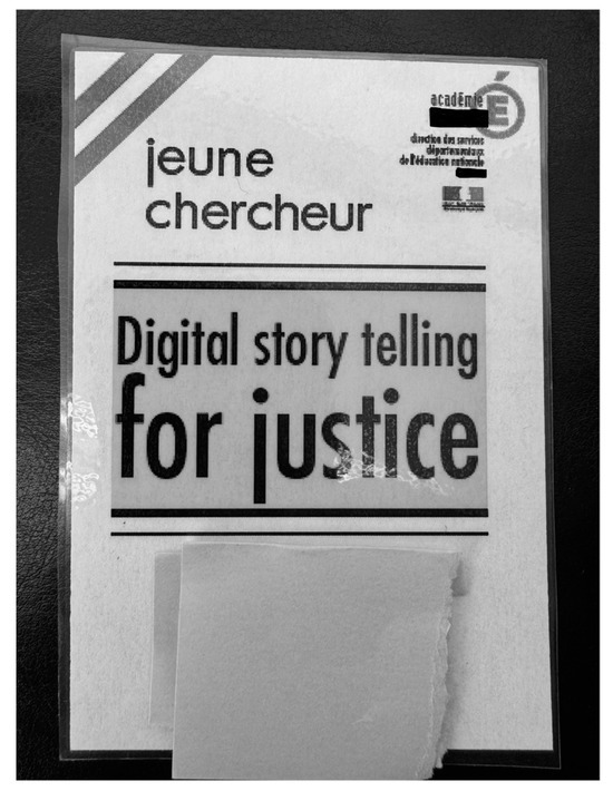In France, I undertook a sustained engagement with migrant youth by means of a critical participatory research study organized around qualitative research training workshops and a digital storytelling project (entitled “Digital Storytelling for Justice” or DST4J) in two metropolitan Paris high schools in 2018–2019. The DST4J project was realized in part through the creation and participant use of a youth researcher (Jeune Chercheur) pass to augment and sanction refugee and migrant youth mobilities within and beyond schools. This pass was marked by prominent usage of the logos and seals of the French Ministry of Education, as well as the name and emblems of the participants’ schools, to convey the permission and approval of these institutions for the activities carried out by their bearer.