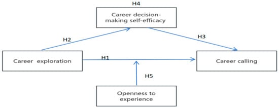 The development of career calling is a process involving deep self-understanding and a strong desire to find meaning in life (Duffy et al. 2018). It requires extensive self-reflection and inquiry through a thoughtful examination of one’s career experiences and values during career exploration, ultimately aimed at constructing and realizing deeper meanings in professional roles (Sturges et al. 2019). First, the core of career exploration lies in providing diverse experiences, such as internships and part-time jobs, which allow individuals to personally engage with the work content and environment of different professions, helping them discover their genuine interests and suitability for specific career roles (Lent et al. 2016; Jiang et al. 2019). For example, during internships, college students can participate in the daily tasks of a career role, experiencing the challenges and sense of accomplishment that work brings. Second, self-reflection on career experiences is a crucial factor in career exploration (Ran et al. 2023), which promotes self-awareness, identifies career tendencies, improves decision-making skills, enhances adaptability, and establishes appropriate goals (Jiang et al. 2019; Ran et al. 2023). In other words, through exploratory practice, individuals not only gain an understanding of the actual content and specific requirements of their work but also reflect on the impact of occupational roles in their personal lives. Based on this reflection, individuals gradually clarify which occupational roles better align with their career goals and life values, thereby forming a deep identification with specific occupational roles (Duffy et al. 2018; Sturges et al. 2019). Therefore, an individual’s career exploration behavior may facilitate the perception of external forces driving their sense of purpose and confirm that a specific career role helps achieve this purpose, fulfilling both personal aspirations and social contributions. Consequently, the first hypothesis of this study is proposed: