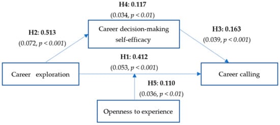 Career exploration positively influences career calling through career decision-making self-efficacy.