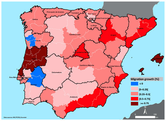 Migration rate (2021). Source: Own elaboration, based on data from INE (Portugal and Spain).
