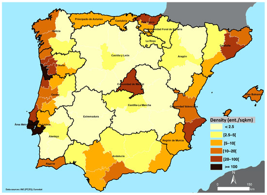 Density of enterprises (2021). Source: Own elaboration, based on data from INE (Portugal and Spain).