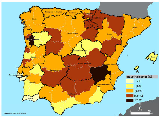 Relevance of industrial enterprises (2021). Source: Own elaboration, based on data from INE (Portugal and Spain).
