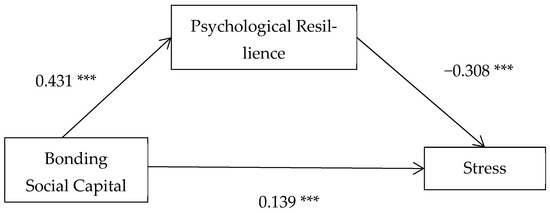 The Mediated Effect of Psychological Resilience between Bonding Social Capital and Stress. *** p < 0.001.