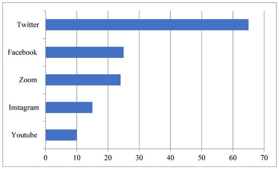 Among the various platforms, it is notable that Twitter was the most frequently used, significantly more so than the rest. Figure 6 displays the top five digital applications used, with Twitter leading, followed by Facebook, Zoom, Instagram, and YouTube, in that order.