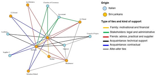 This section discusses the ego-network configurations of two emblematic entrepreneurial strategies in which family support and the benefits of belonging to multiple social groups and contexts prevailed.