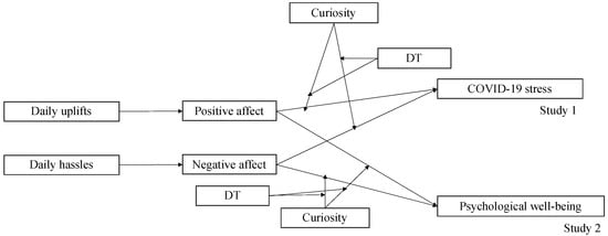 Thus, the present research aims to contribute to the expanding of knowledge about daily events and their relations with affect and two indicators of quality of life. We expect that daily micro-events will influence COVID-19 stress (study one) and psychological well-being (study two) via affect. We also expect that these relations will be moderated by curiosity and the DT.