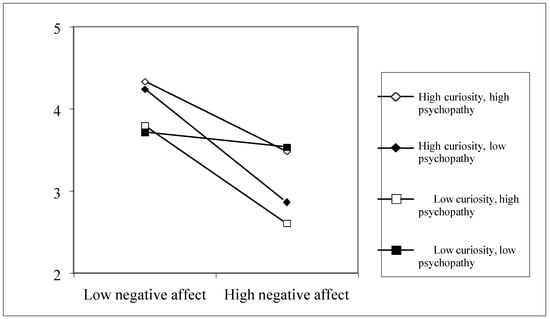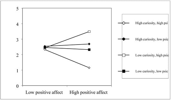 Psychopathy. The results demonstrated a significant moderated mediation index (−0.07, CI 95% [−0.13, −0.01]). Moreover, we found a significant three-way interaction effect between positive affect, curiosity, and psychopathy on COVID-19 stress (B = −0.23, p < 0.05), which uniquely accounted for 7% of the variance (F(224) = 1.989, p < 0.05).
