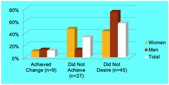 As Figure 2 shows, there are large gender differences in the interviewees who desired but did not achieve change. Many more women expressed dissatisfaction with their division of household labor prior to the pandemic, routinely describing their domestic responsibilities as overwhelming and exhausting. While 57 percent of the women in our sample claimed some dissatisfaction, only 25 percent of the men expressed a desire for change. In addition, women and men tended to desire different types of change. Women largely wished for more help from their partners with cooking, cleaning, childcare, and/or mental labor. Some explicitly expressed their frustration that being a woman left them disproportionately responsible. Shirley, a 52-year-old mother of two, described her frustration that her husband did not know how to complete basic household chores: