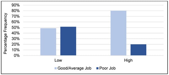 Differences in the rating of victim treatment were also observed between high and low levels of distributive Just World Beliefs (see Figure 3). A greater proportion of those holding low levels of distributive Just World Beliefs rated the treatment of victims in court as ‘poor’ (51.3%) than of those who had high levels of distributive Just World Beliefs (20.0%). The difference observed was found to be statically significant (X2 (1, n = 114) = 11.8, p ≤ 0.001), with a medium effect size (Phi = 0.32). The largest impact came from those with low distributive Just World Beliefs who rated the court’s ability to help victims as ‘poor’ more often than would be expected (see Table 5).