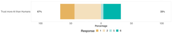 Further, the analysis of “respondents trust AI more that humans” (Figure 2) revealed that the majority (67%) overall trust AI more than humans (33%).