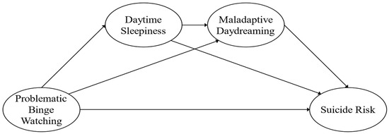 Even as binge watching becomes increasingly prevalent among young people, alongside concerning spikes in youth suicide rates and their associations with sleep-related difficulties, the specific nature of the relationship between problematic binge watching and suicide risk remains unknown. Furthermore, the effects of daytime sleepiness and maladaptive daydreaming on this nexus have yet to be thoroughly understood. Furthermore, it is unclear if gender disparities exist in the aforementioned factors and relationships. For the reasons stated above and based on the evaluated literature, the current study seeks to fill such knowledge gaps. The primary goal of this study was to determine if daytime sleepiness and maladaptive daydreaming influence the connection between problematic binge viewing and suicide risk (Figure 1). The second goal was to see if the aforementioned model was consistent across genders.