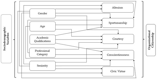 The background of organizational citizenship behaviors has been analyzed in several international investigations on organizational behavior (e.g., Worku and Debela 2024; Ndoja and Malekar 2020). We will focus on the systematization of investigations centered on causal models, focusing on the analysis of the relationship between individual variables and organizational citizenship behaviors. There are different perspectives on this relationship, and some even contradict them (Berbaoui et al. 2015; Toga et al. 2014). However, the dominant perspective supports the existence of a relationship between the two dimensions, where professionals tend to make a discretionary effort in their work, creating value for the organization according to its personal and individual characteristics (Akbar et al. 2019; Bello et al. 2018; Shankar and Prabhakara 2018; Badawy et al. 2017; Bhatla 2017; Saleem et al. 2017; Dirican and Erdil 2016; Dwivedi et al. 2015; Pavalache-Iliea 2014; Mahnaz et al. 2013).
