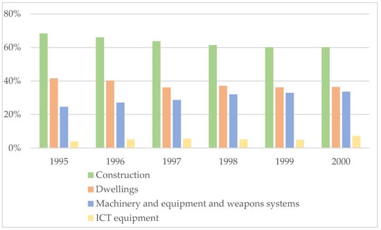 Breakdown of gross fixed capital formation, share of total (1994–2000). Source: AMECO.