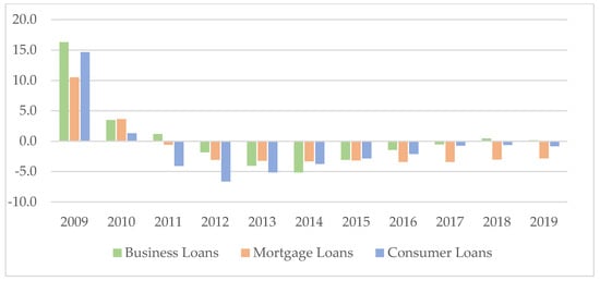 The retrenchment of private consumption and, particularly, the collapse of investment were related to another feature of the Greek growth model that was not adequately considered by the creditors: the dependence of the economy on the Greek banking system. Given the banks’ high exposure to Greek public debt and their undiversified business model, the impact of the sovereign debt crisis on them was tremendous. Losses from the public debt restructuring in 2012, lack of access to the interbank market, a dramatic increase in Non-Performing Loans (NPLs) as the economy deteriorated,10 and a massive outflow of deposits as savings were increasingly used by people who had lost their jobs or a large part of their income, to service their debts and pay off their obligations towards the state (Pagoulatos 2018), brought the banking system to the brink of collapse. The result was a credit crunch from 2011, and for the rest of the decade, credit expansion turned negative (Figure 9).