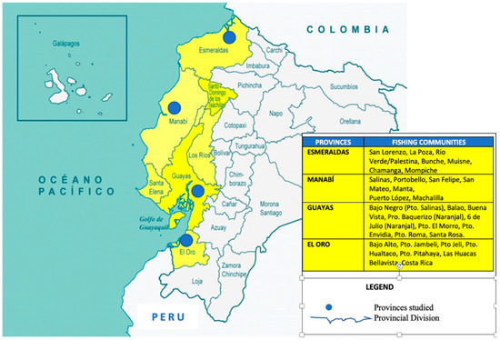 | 2 | This study was limited to mainland Ecuador, therefore Galapagos Province was not included. Santa Elena Province was excluded due to the dominance of industrial fisheries and absence of mangroves since the focus of the project was on mangrove associated fisheries. |