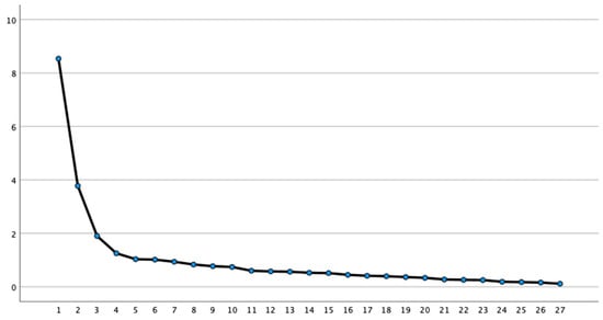 Table 1 presents the means and basic descriptive results of the twenty-seven items of the scale for the evaluation of future teachers’ perceptions of unaccompanied foreign minors (EPFD-UFM). The scale was conceived and examined for content validity by a panel of content experts. Construct validity was examined using EFA and CFA. In this sense, a series of dispersion measures were applied to examine kurtosis and asymmetry in order to establish whether the response data to the items met the assumption of normality when the scale items were finally distributed according to the factors identified in the first steps of the analysis. This analysis was performed in accordance with the recommendations of Hu and Bentler (1998) and Schmider et al. (2010), who consider that items associated with lower asymmetry and kurtosis values can be considered suitable for measurement at scale.