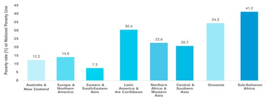 Female poverty rates by region, using national poverty line estimates, 2022 projections. Source: UN Women, UNDP, and Pardee Center for International Futures using the International Futures modeling platform ().