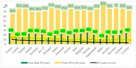 Distribution of immigrants by age group, 2022. (Source: Authors’ elaboration with data from Eurostat.).