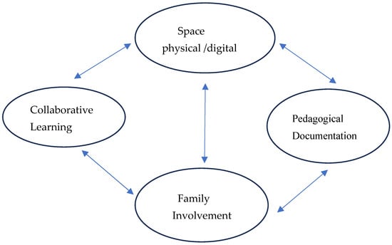 It is a methodological tool for the evaluation of children’s learning and educators’ professional development and practice (). It can function as a part of the co-creation of knowledge within the social space of daily routines and practice (). It is more than a simple recording of the classroom’s moments because, as () mention, “documentation must serve to advance learning, not merely capture it”. Each recording and each track give information for further study and reflection. Reflection is a basic step in the process of PD; however, it is often omitted (). It enables children, educators and parents to learn from each other during daily activities by recording the educational processes and their thoughts and feelings (). The way in which the different voices of the above factors are represented in the text is important () for the quality of the documentation produced. Documentation, when used effectively, empowers families to be active participants in their children’s learning journey by fostering a sense of participation and involvement among parents and significantly bridging the gap between parents and the school environment (; ; ).