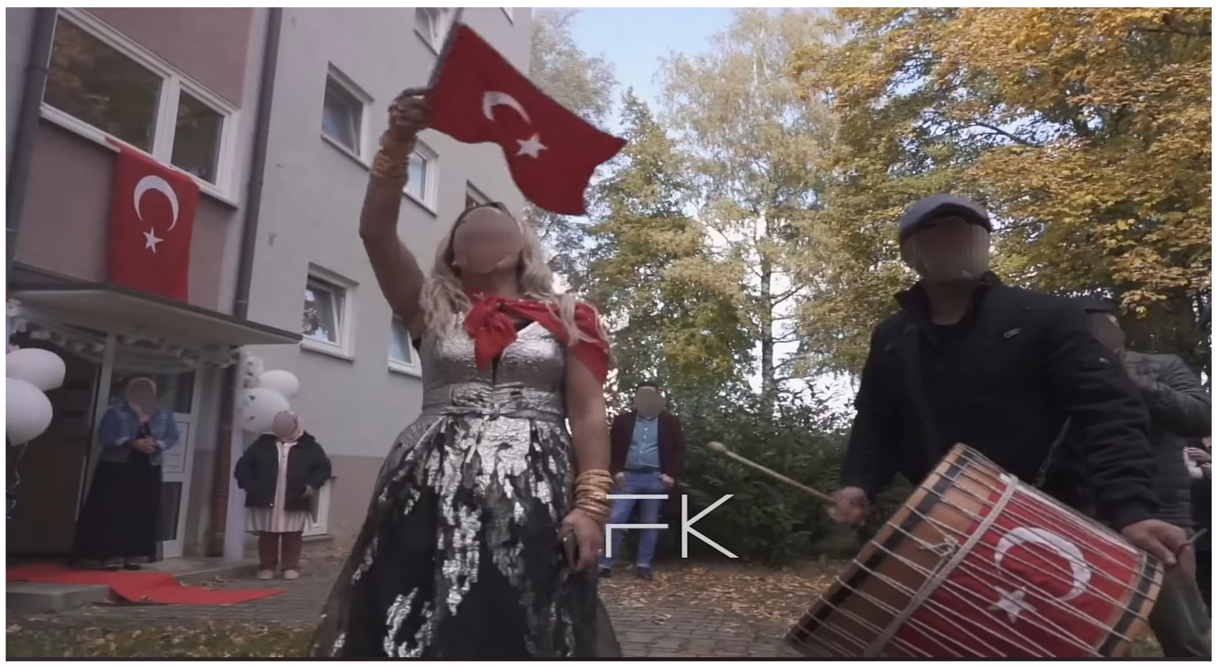 The Turkish flag, in this context, transcends being a mere nostalgic remnant of a distant homeland. It emerges as a dynamic emblem, reclaiming space for an identity that is often marginalised within German mainstream culture. In a society where Turkishness is frequently racialised, politicised, and rendered as “other”, the act of publicly displaying the flag during weddings constitutes a form of embodied cultural citizenship, asserting a right to difference while preserving a sense of belonging.