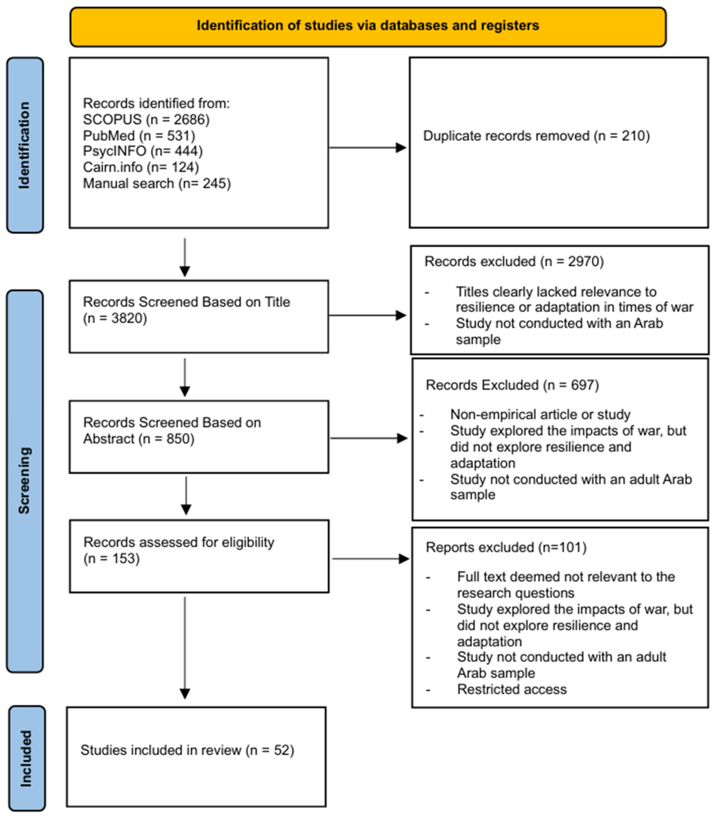 Younes RS, Moukarzel C, Ibrahim CD, Mzawak MA. Finding Strength in Times of War: A Systematic Review of Resilience and Adaptation Among Arabs Exposed to War. Social Sciences. 2025; 14(11):626. https://doi.org/10.3390/socsci14110626