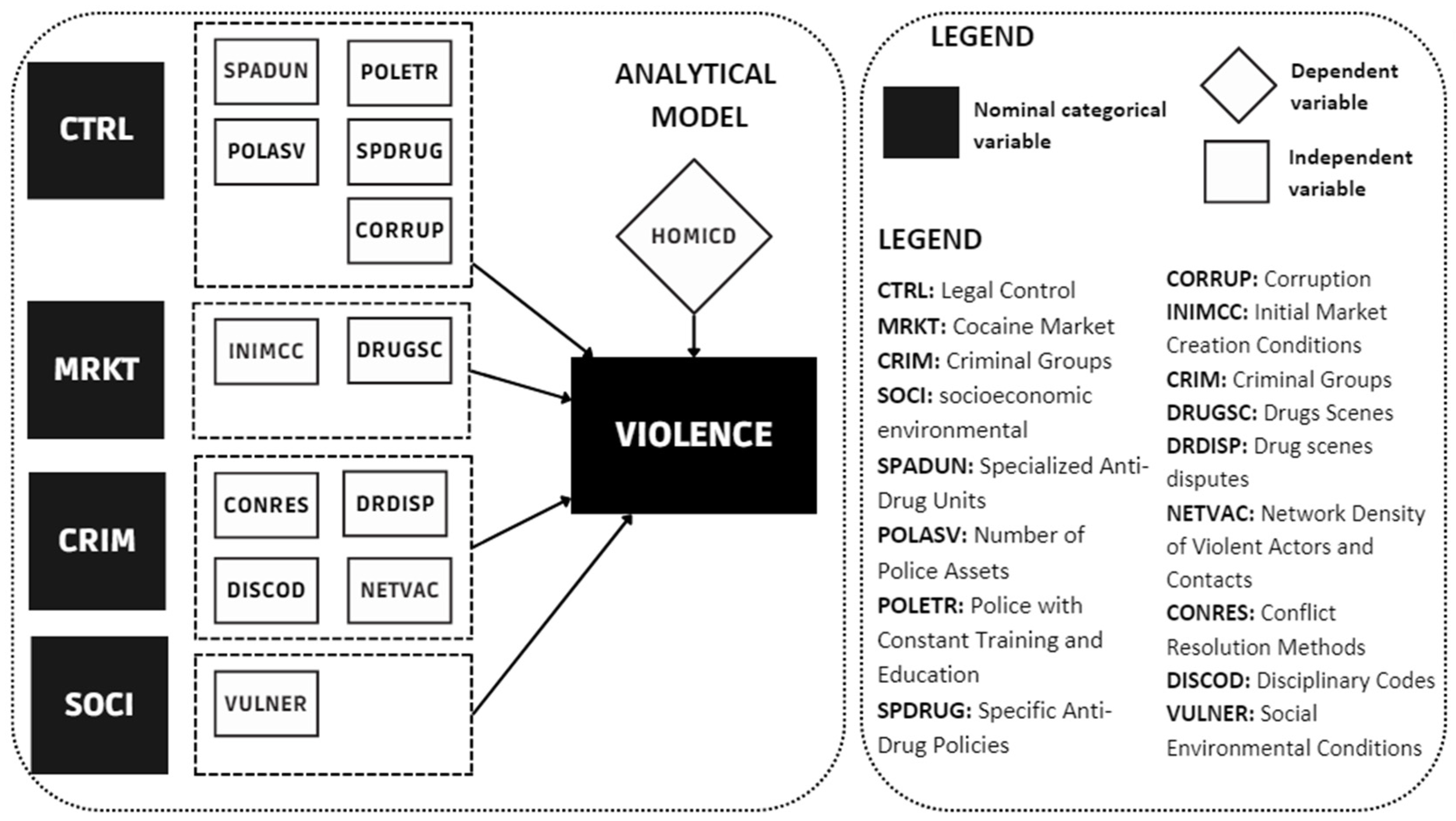 Figure 1). These categories encompass factors such as the presence of specialized anti-drug units, levels of corruption, conflict resolution methods among criminal groups, and the vulnerability of social environments.