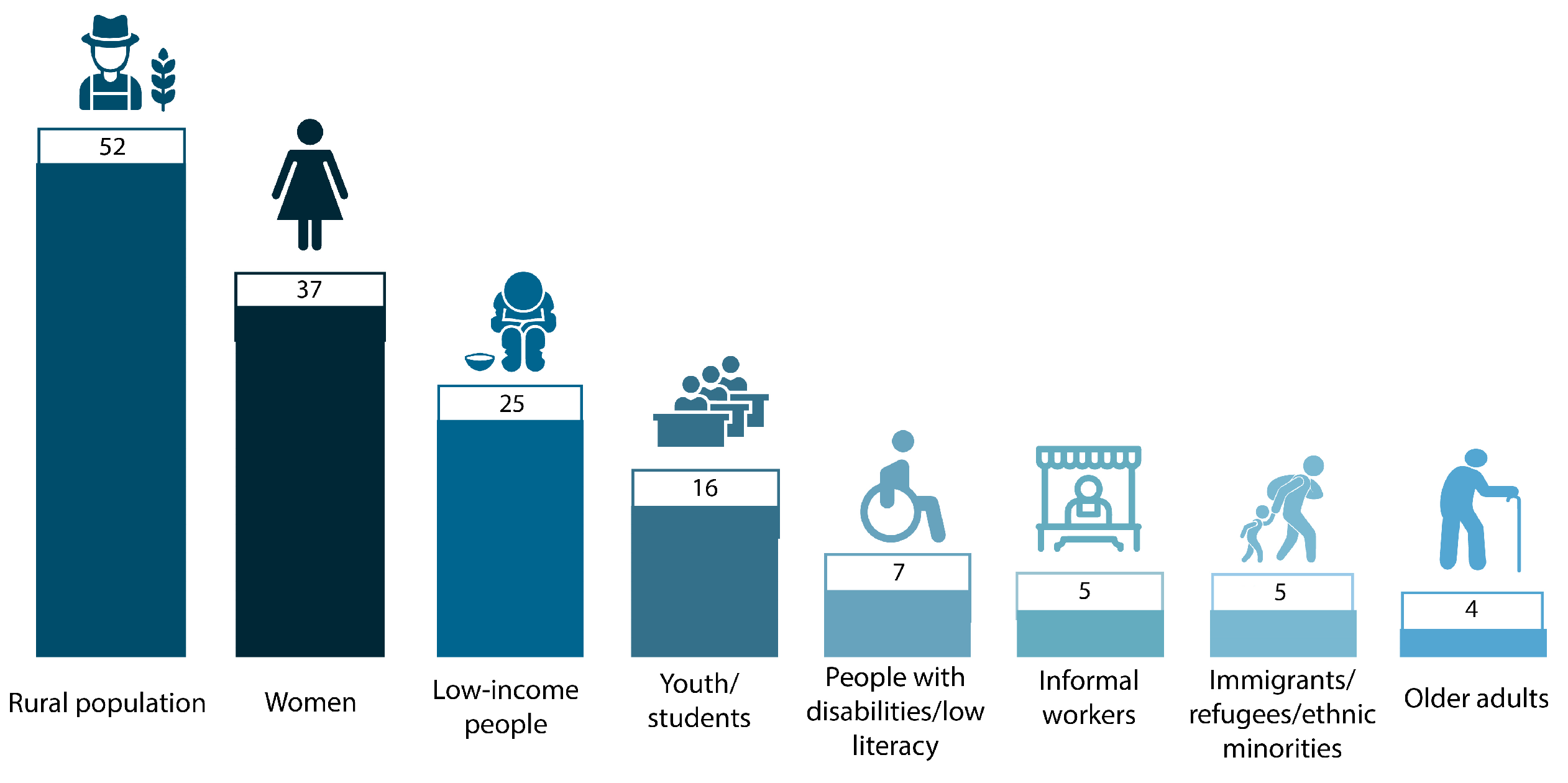 | Inclusion strategies via fintech and digital platforms, including chatbots, gamified mobile applications, social media, online conferences, educational videos, and MOOCs. | (Tulcanaza-Prieto et al. 2025; Amnas et al. 2024; Çiğdem and Terence 2024; Nihaya et al. 2024; Ordoñez et al. 2024; Wealth et al. 2023; Desai et al. 2022; Pandey et al. 2022; Adetunji and David-West 2019; Kumari and Azam 2019; Febriana and Damayanti 2017) |