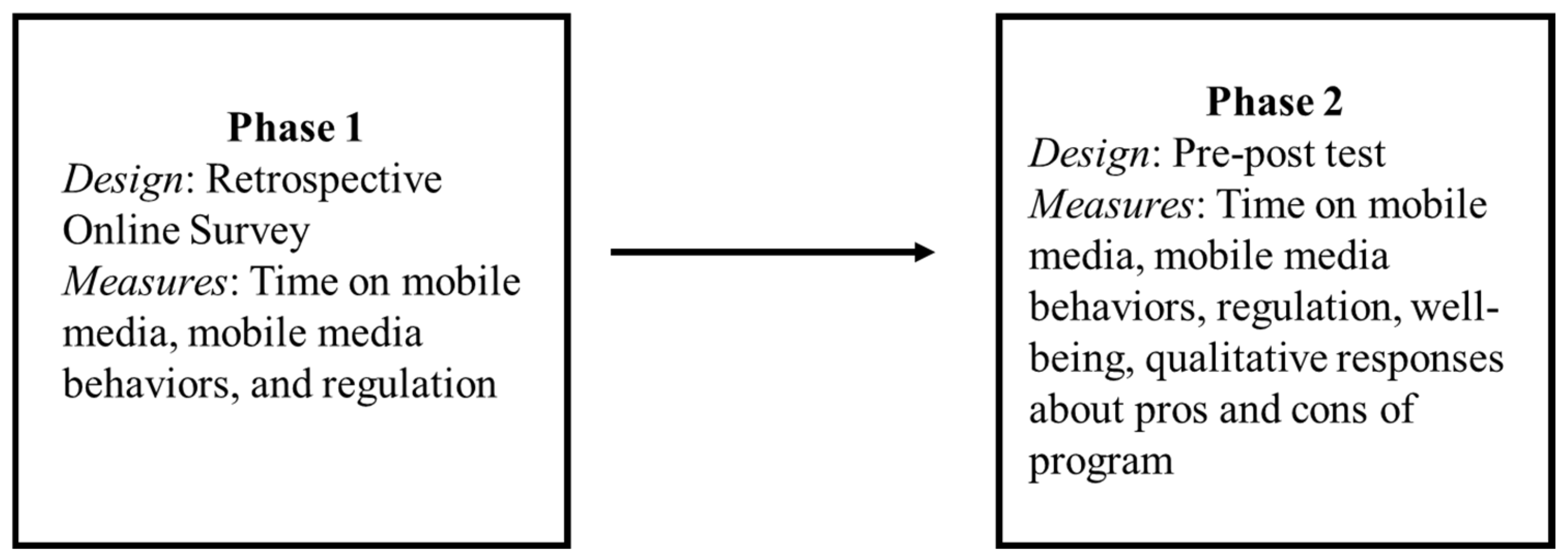 Figure 1). For Study 1, participants who already completed the Talk More, Tech Less 30-program in previous years were asked to provide answers to retrospective questions regarding their regulation skills and confidence in their mobile media habits from before the program to after, while also commenting on the strengths and weaknesses of the program (