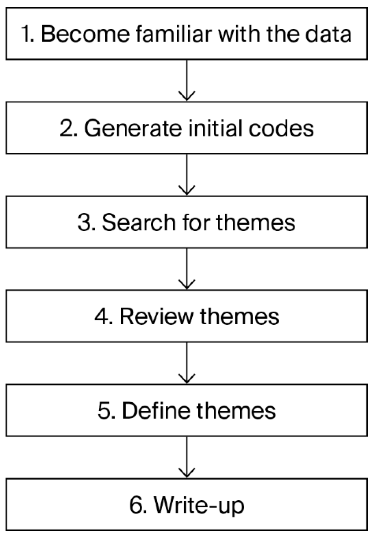 The thematic analysis steps were applied in the following manner: Firstly, the researcher familiarized herself with the data to gain a comprehensive understanding. Preliminary codes were identified, and then the identified themes were re-examined. Initially, nine themes were identified, but, after a discussion with the supervisor, some overlapping themes were merged and four themes were retained. The initial themes were then re-examined and refined further. An ongoing analysis was carried out to enhance the themes, and, finally, the analysis was transferred into a report.
