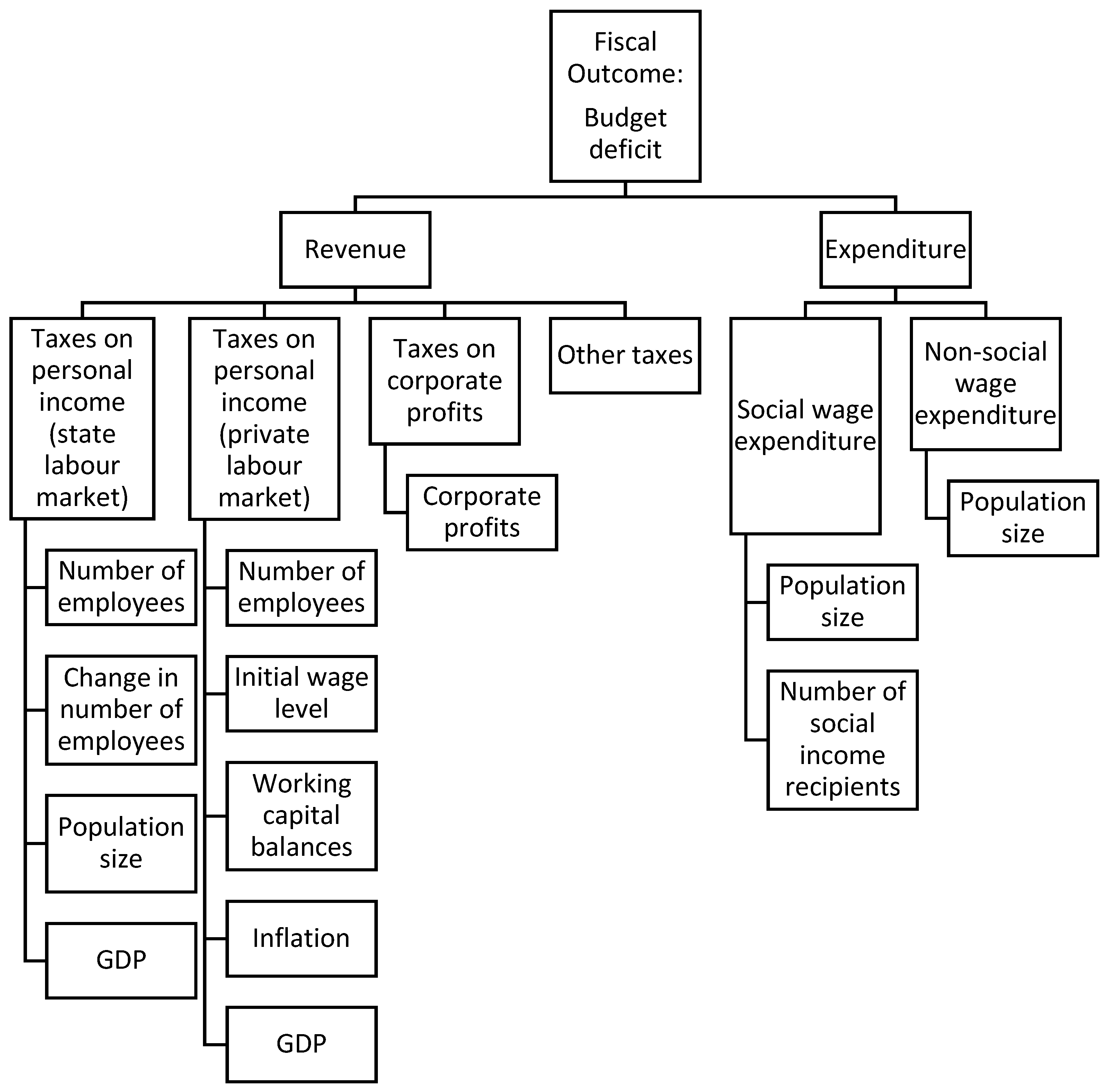 - Murwirapachena, Genius, Andrew Maredza, and Ireen Choga. 2013. The economic determinants of budget deficits in South Africa. Mediterranean Journal of Social Sciences 4: 561–69. [Google Scholar] [CrossRef]