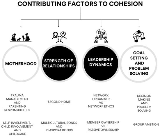 Reflexive thematic analysis of contributing factors to cohesion created with Canva.