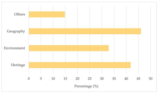The Guadalquivir River, as we have seen, is a fundamental element in the landscape of Córdoba. In this regard, when asked about its educational value, all the students agreed that the river has a clear didactic utility. However, the value attributed to it varied. As shown in Figure 5, 46% of the participants identified a didactic value linked to geography, closely followed by the group of students who identified a heritage value, at 41.8%, and finally, a significant third group observed an environmental value, at 32.8%. It is also worth noting that 25.9% of the participants recognized more than one value related to the river.